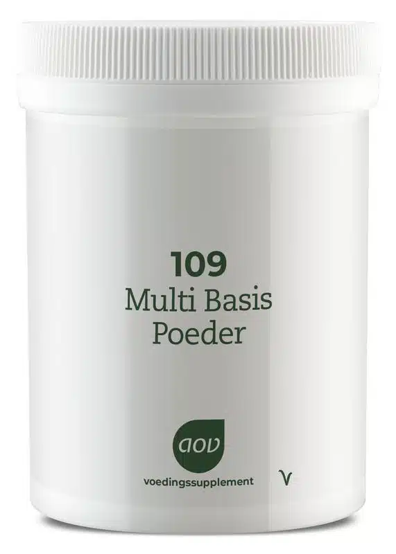 De Multi Basis Poeder – Zonder IJzer | AOV is speciaal ontworpen voor diegenen die een supplement willen zonder ijzer. Dit poeder lost gemakkelijk op en is perfect voor dagelijks gebruik.