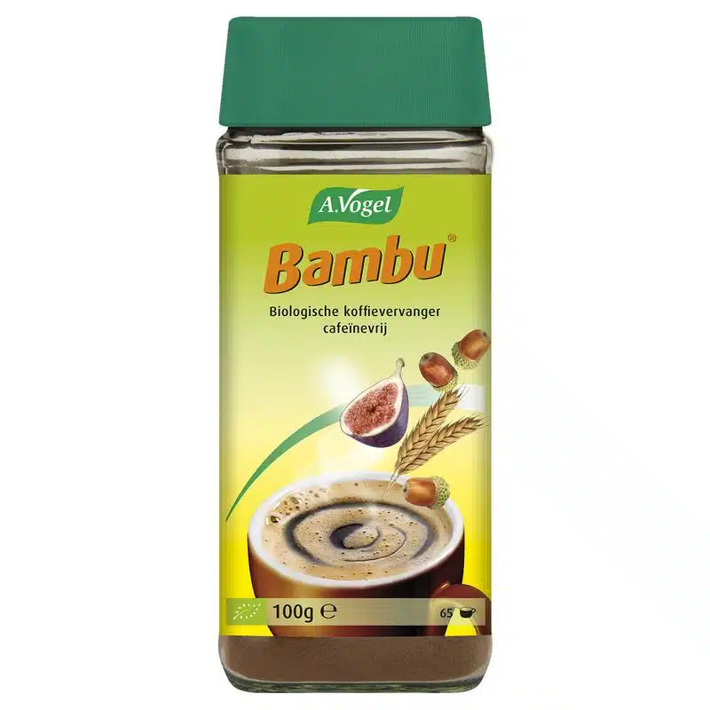 A.Vogel Bambu is een 100% natuurlijke koffievervanger gemaakt van cichorei, Turkse vijgen, tarwe, gemoute gerst en Griekse eikels. Een lekker en gezond kopje koffie voor elk moment dus. U kunt Bambu met een gerust hart voor het slapen drinken. Doordat het geen cafeïne bevat, beïnvloedt deze koffie de slaap niet.