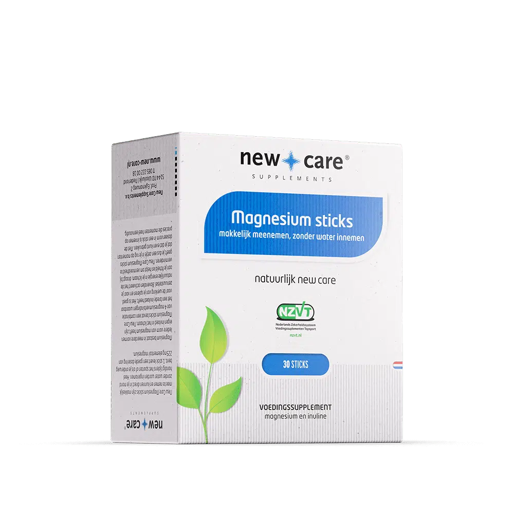 New Care Magnesium sticks zijn makkelijk mee te nemen en kunnen direct in de mond zonder water worden ingenomen. Heel handig tijdens het sporten of als je onderweg bent bijvoorbeeld. 1 stick levert een goede dosering van 225mg elementair magnesium.