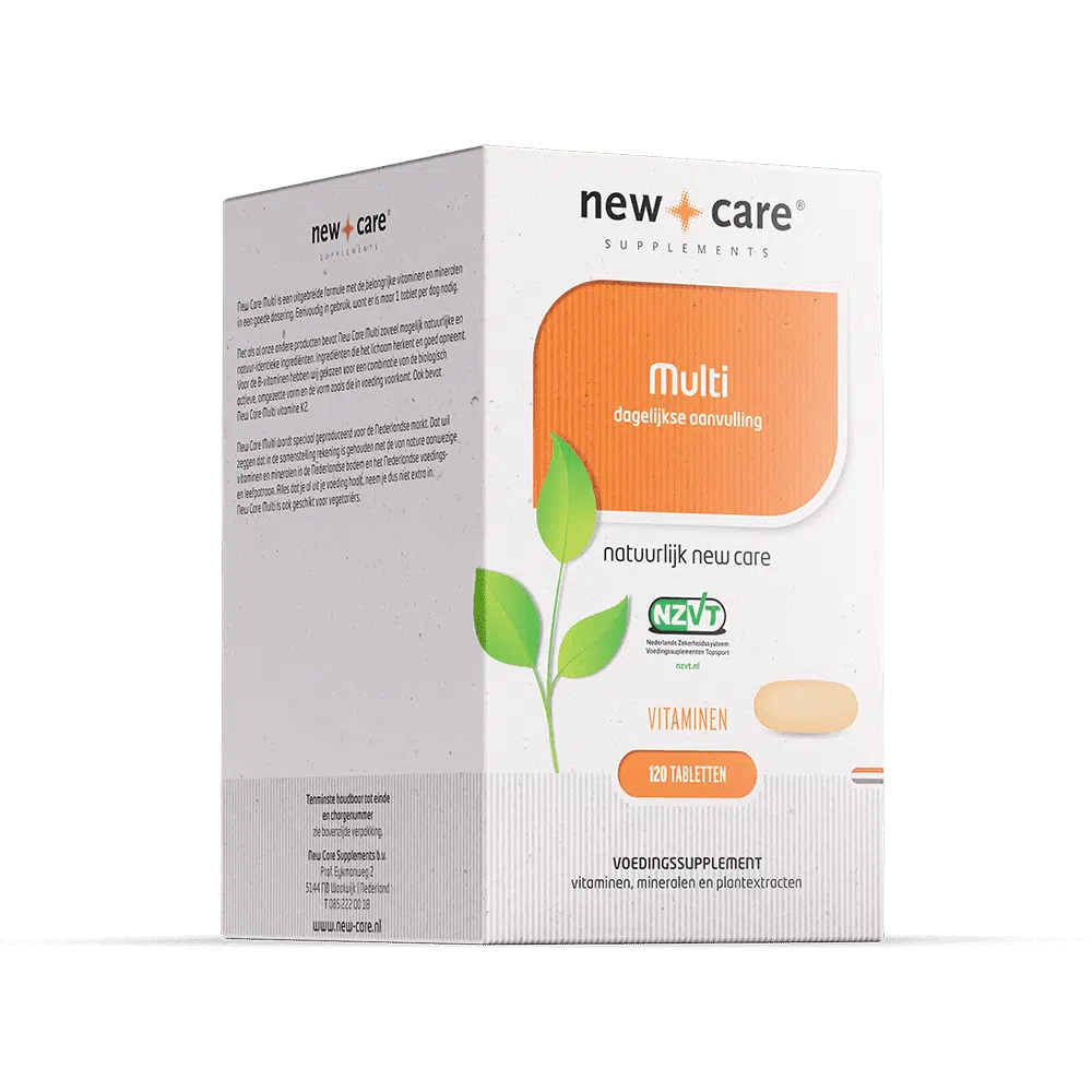 New Care Multi is een uitgebreide formule met de belangrijke vitaminen en mineralen in een goede dosering. Eenvoudig in gebruik, want er is maar één tablet per dag nodig.