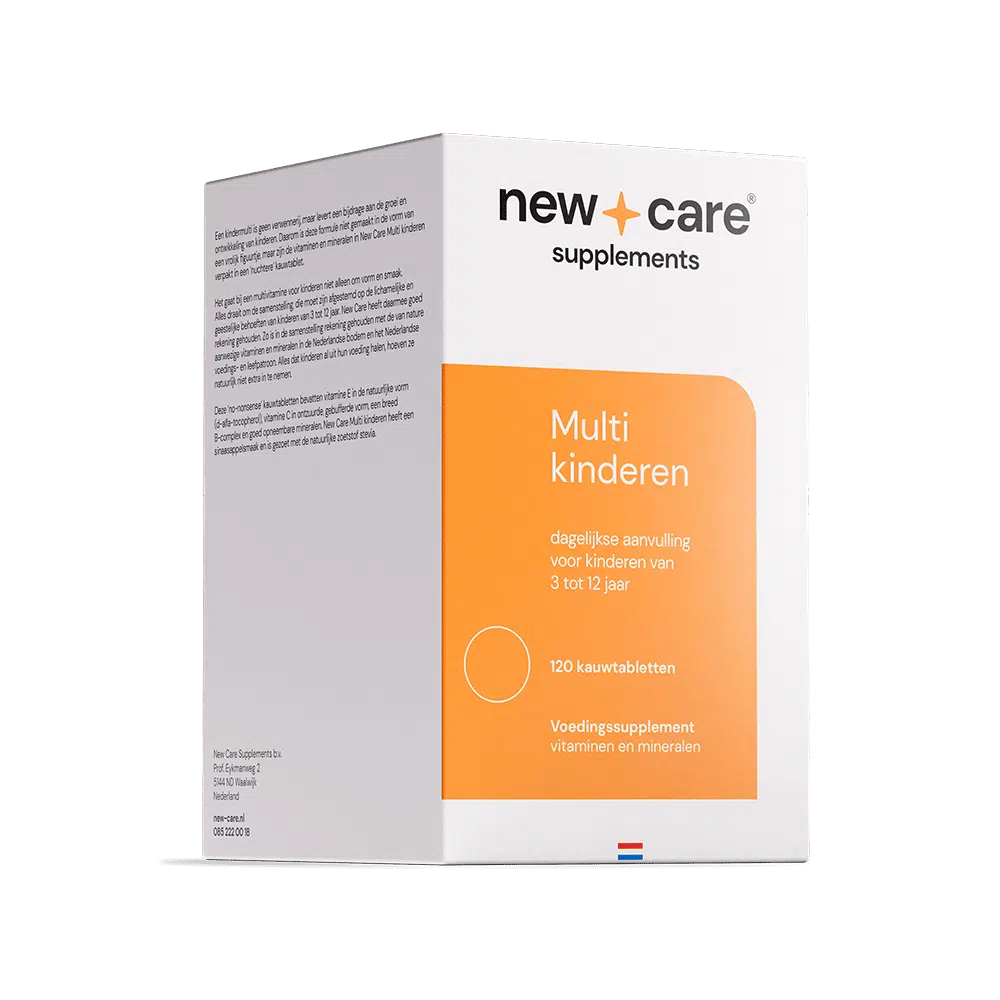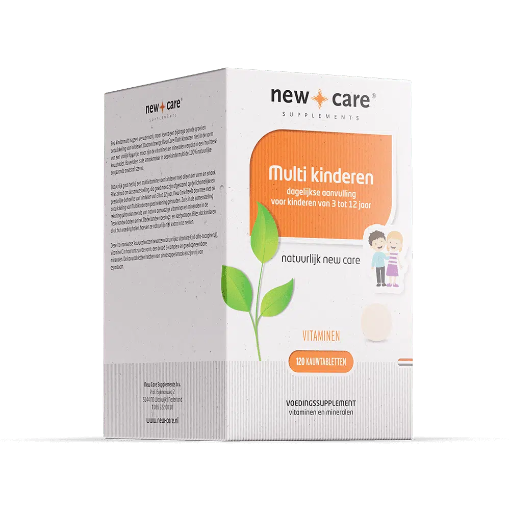 Een kindermulti is geen verwennerij, maar levert een bijdrage aan de groei en ontwikkeling van kinderen. Daarom brengt New Care Multi kinderen niet in de vorm van een vrolijk figuurtje, maar zijn de vitaminen en mineralen verpakt in een ‘nuchtere’ kauwtablet. Bovendien is de smaakmaker in deze kindermulti de 100% natuurlijke en gezonde zoetstof stevia.