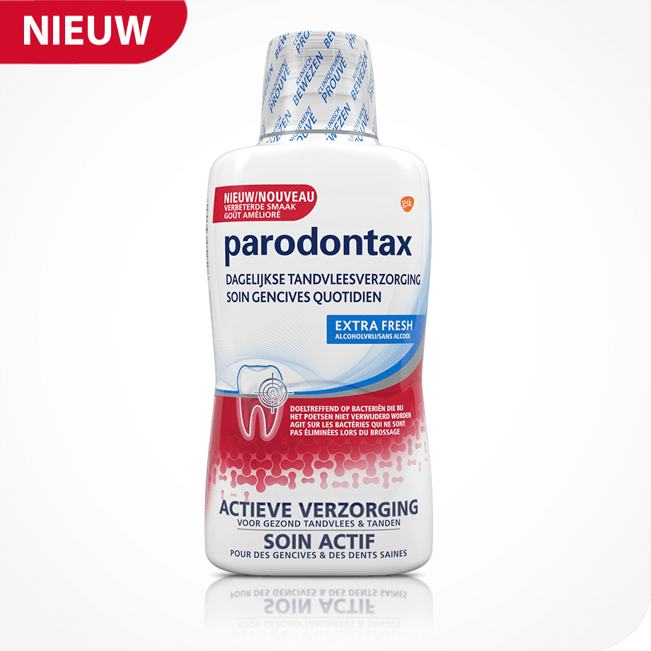 Parodontax® is antibacterieel mondwater voor elke dag dat je tanden (bij dagelijks gebruik) helpt te beschermen tegen bacteriën die tandvleesproblemen kunnen veroorzaken Het bevat fluoride en chloorhexidine. Chloorhexidine vermindert effectief tandplak, de belangrijkste oorzaak van een tandvleesontsteking.