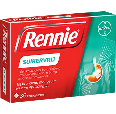 Rennie Suikervrij is een zuurneutraliserend middel dat snel verlichting geeft bij brandend maagzuur en zure oprispingen