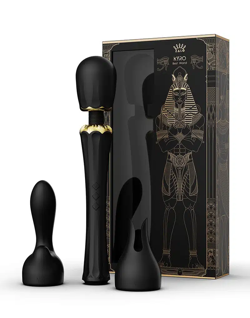 Het ontwerp van deze wandvibrator is geïnspireerd op de scepter van machtige Egyptische farao’s. De vibrator zendt sterke vibraties uit die geconcentreerd zijn op de kop van de toverstaf voor een krachtige, directe stimulatie. De grote massagekop helpt pijnlijke spieren te kalmeren en stress te verlichten. Kyro is uitgerust met twee multifunctionele siliconen accessoires om de mogelijkheden van plezier verder uit te breiden. Het ene opzetstuk kan worden gebruikt om gevoelige gebieden te ‘teasen’ en te stimuleren, bijvoorbeeld de tepels, terwijl het andere opzetstuk perfect is om de G-spot te verkennen en tegelijkertijd de clitoris te stimuleren.